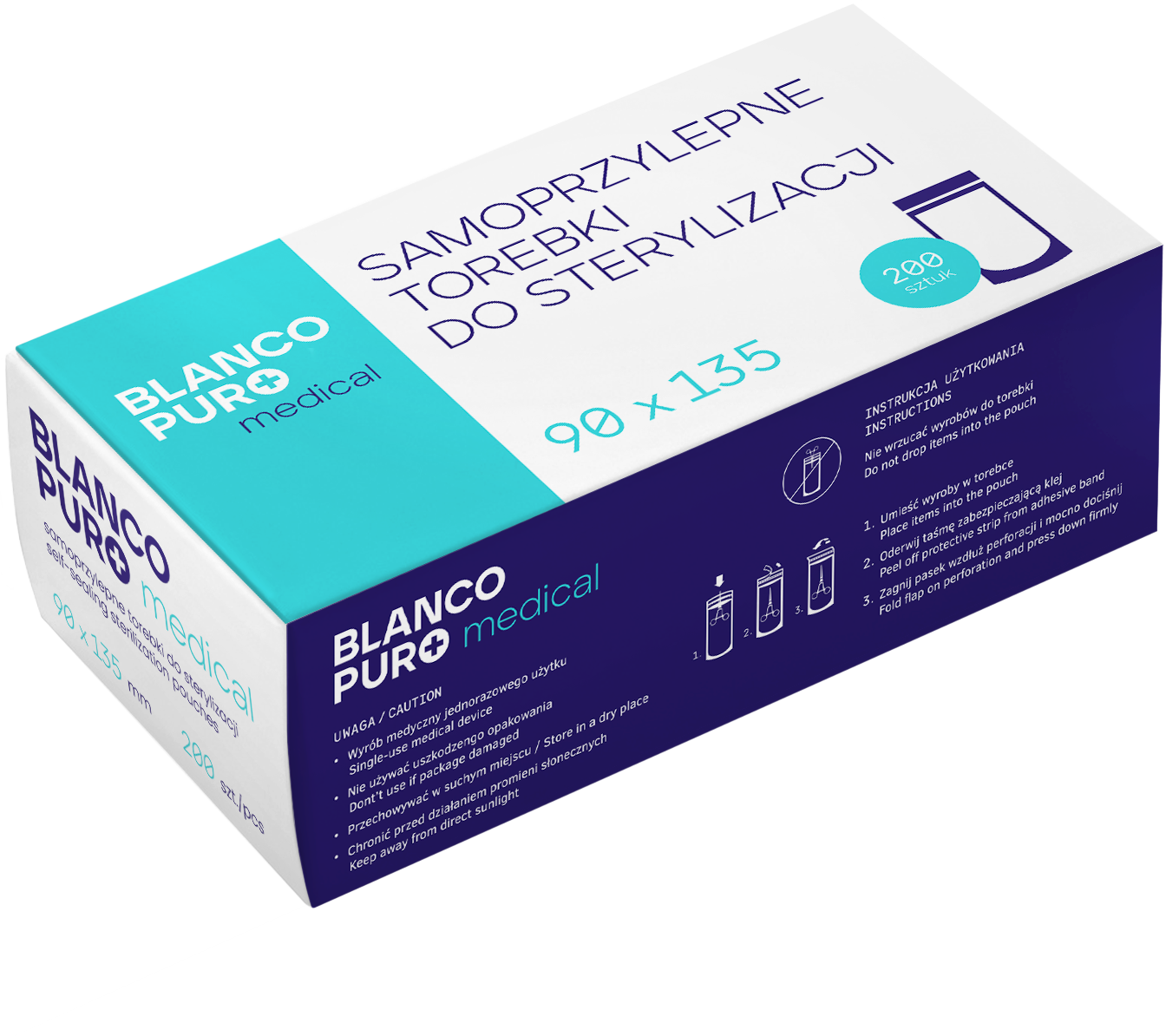 Torebki do Sterylizacji Blanco Puro Samoprzylepne Papierowo-Foliowe Woreczki 200 sztuk 90x135cm