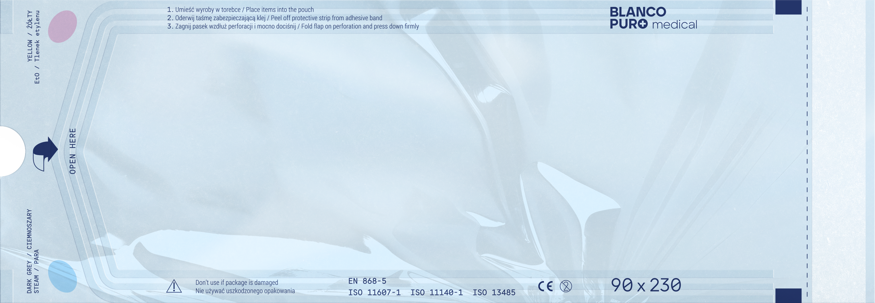 - przeznaczone do sterylizacji parą wodną (STEAM) oraz tlenkiem etylenu (EtO)
