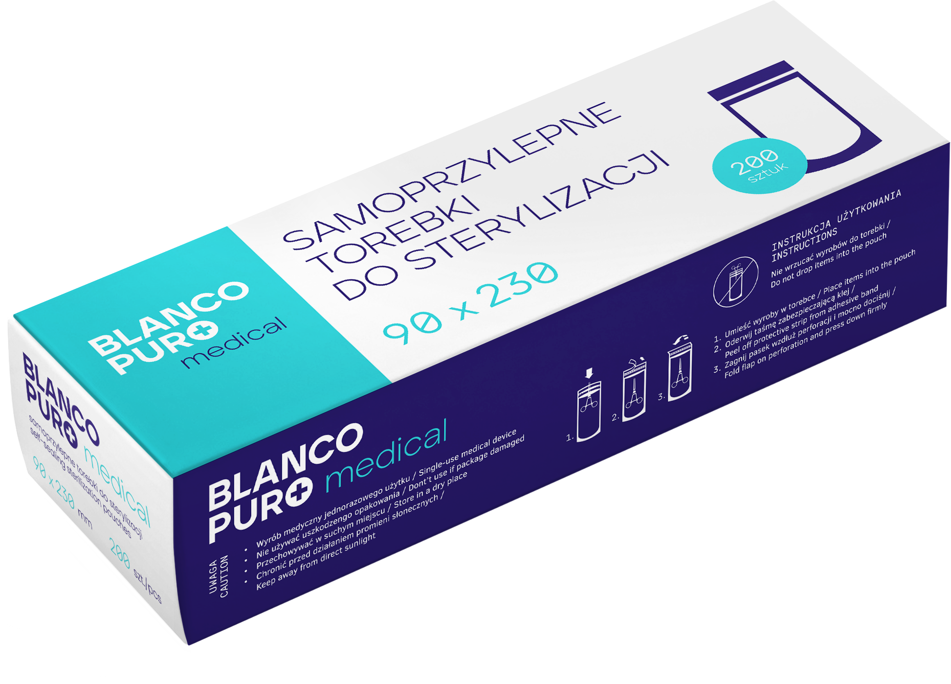 Torebki do Sterylizacji Blanco Puro Samoprzylepne Papierowo-Foliowe Woreczki 200 sztuk 90x230cm