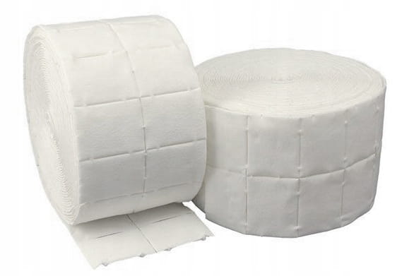 Każda rolka wacików jest odpowiednio perforowana o wymiarach 4 cm x 5 cm.